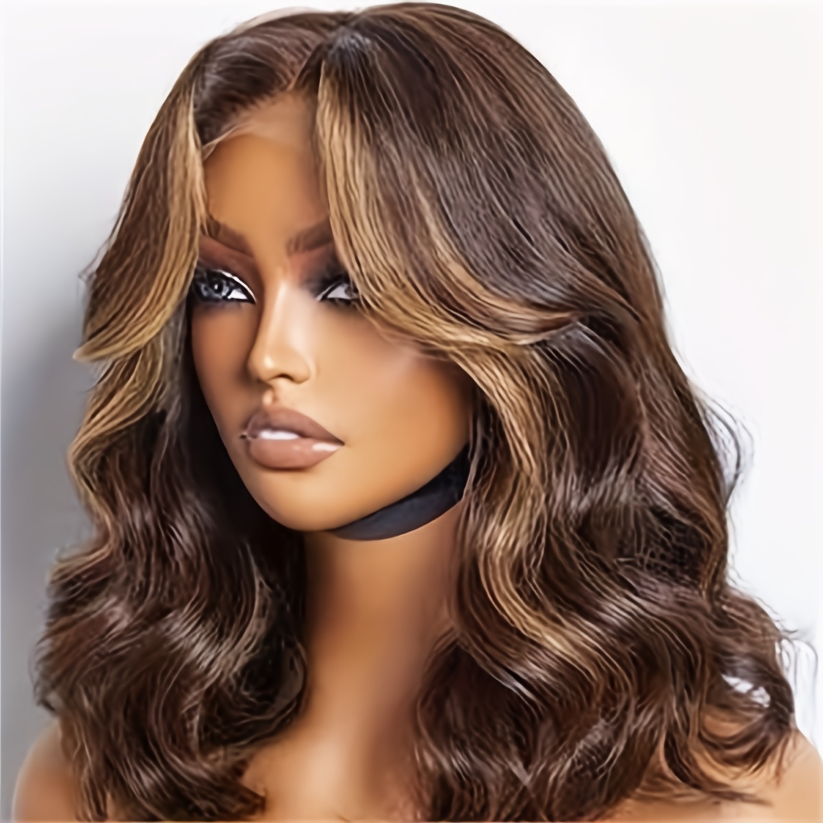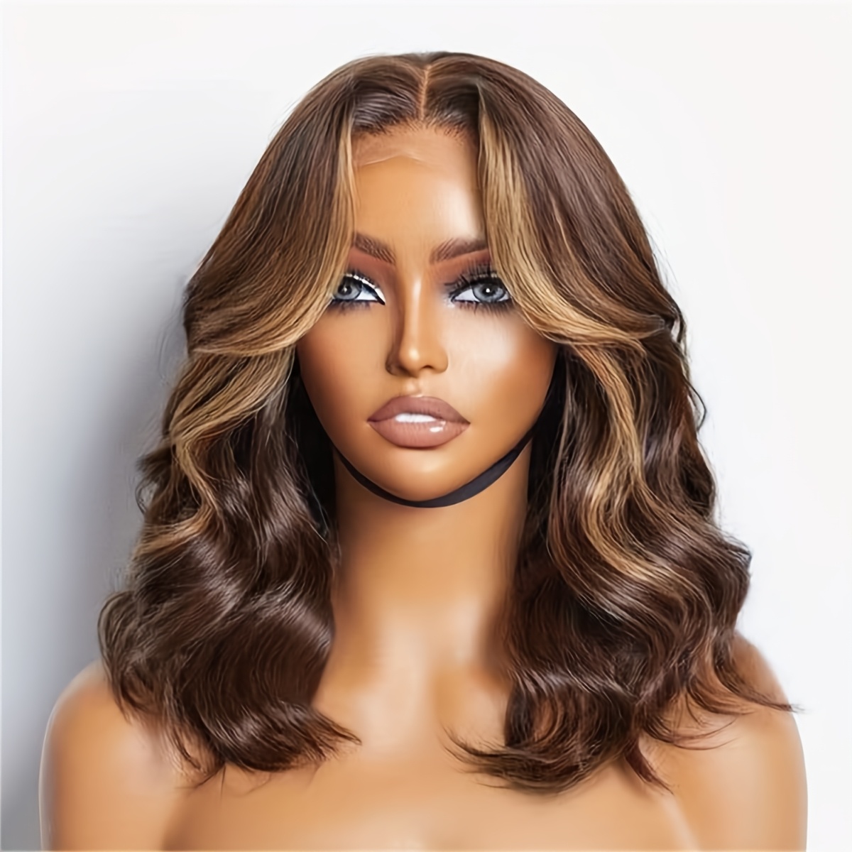 14-Inch Short Ombre Bob Wig with Brown And Blonde Highlights, Wavy Synthetic Hair Featuring a Lace Front, Pre-Plucked Hairline, Lightweight for Everyday Use - Bleached Knots