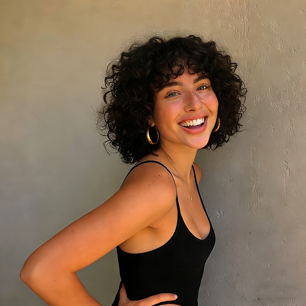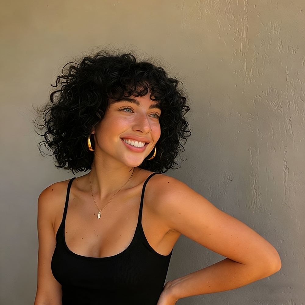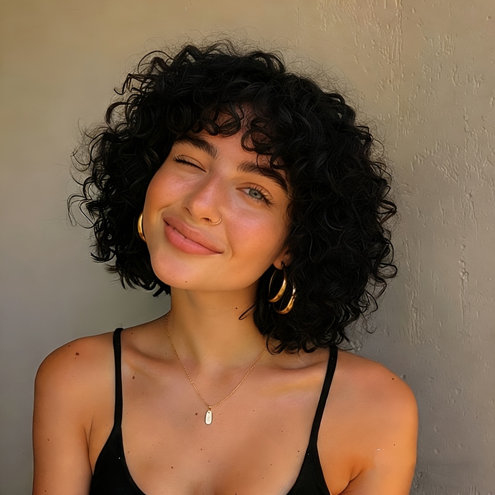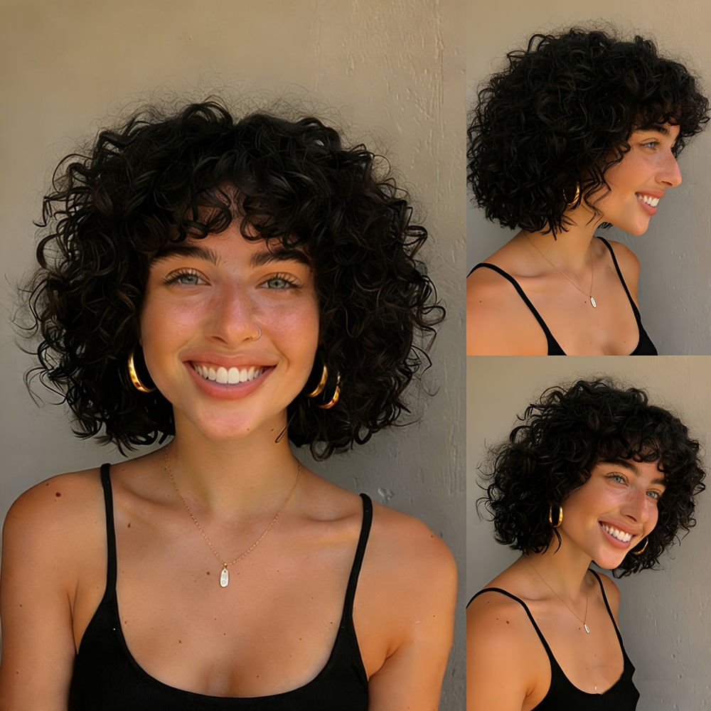 180% Density Water Wave Curls Pixie Cut Human Hair Wig | Machine Made Bob Wig with Bangs, Natural Black Color, 8\u002F10 Inch, Rose Net