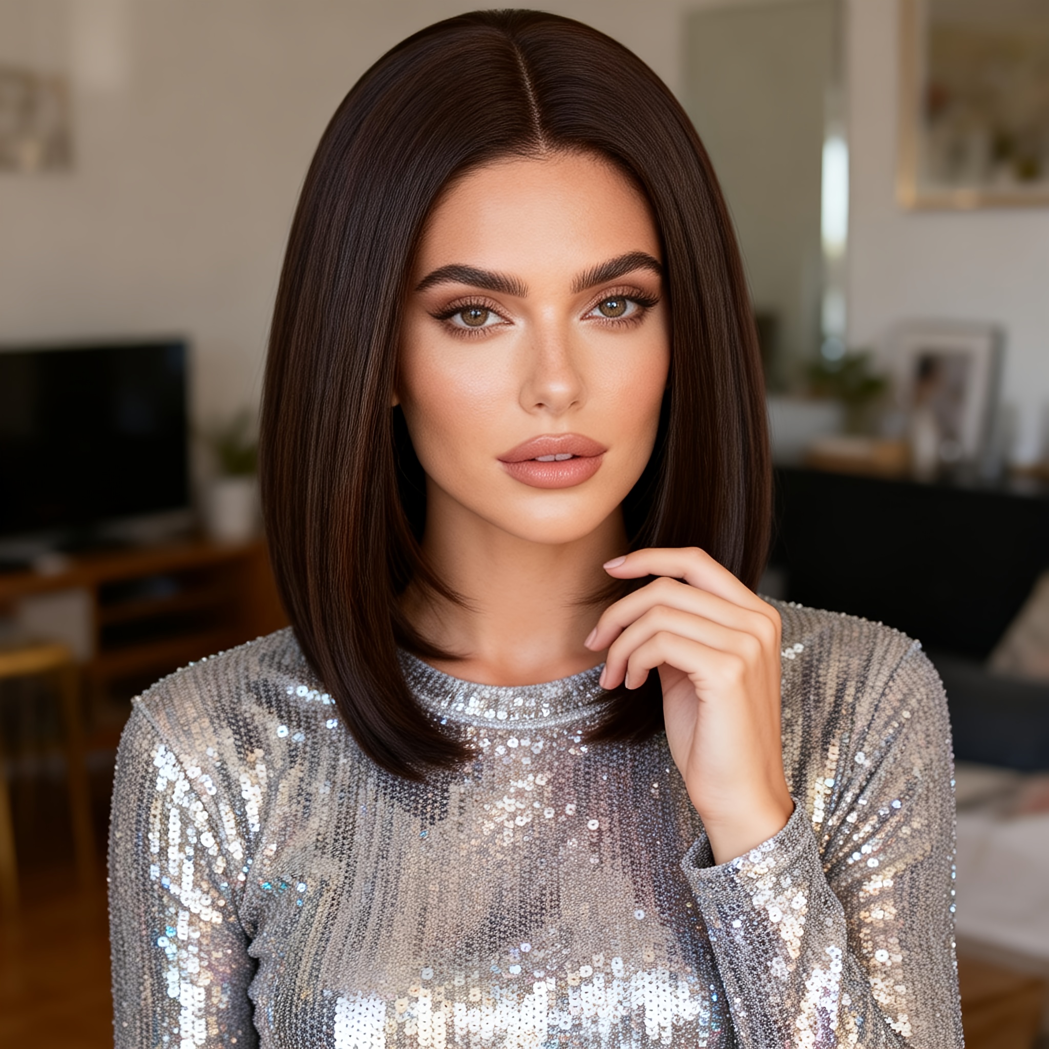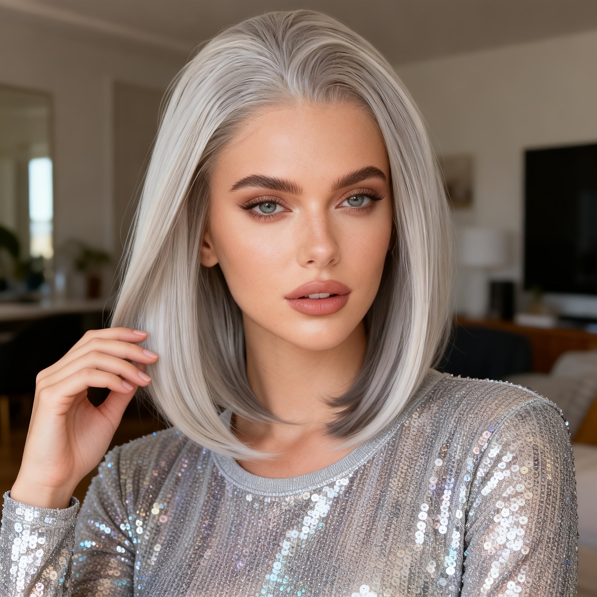 Dark Brown Cool Grey Blunt Lob Haircut Short Bob Wig Light Ash Grey 13x4inch Short Synthetic Lace Front Wig Pre Plucked Hairline Chocolate Brown Lace Front Synthetic Wig Daily Party Cosplay Halloween