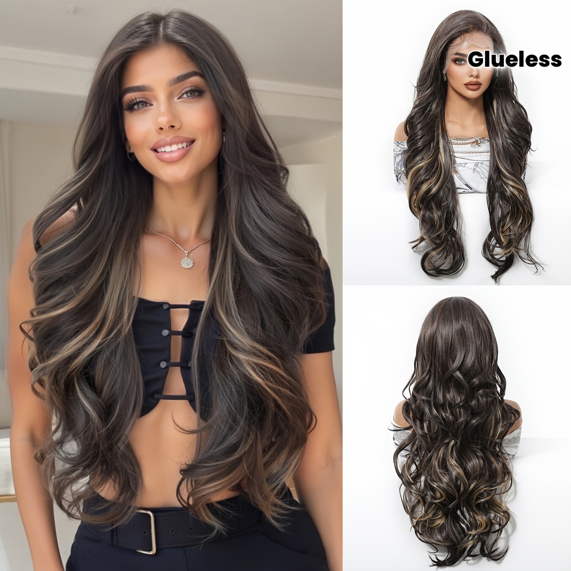 Transparent Lace Front Wig 13x6 HD Glueless Lace Front Wig | 28Inch Body Wave Synthetic Lace Wig with Pre Plucked Natural Hairline | Daily Wear Party-Natural Look & Comfort Fit Elegant Style Versatile for Woman