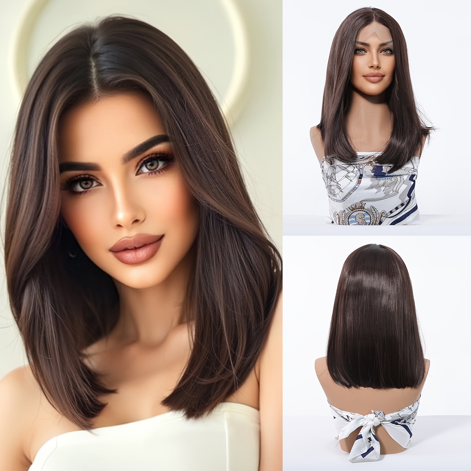 Women's 13x4 HD Transparent Lace Front Wig, 12 Inch Straight Brown Bob, Synthetic High Temperature Fiber, Glueless Comfort Fit for Daily Wear & Special Occasions, Synthetic Lace Front Wig